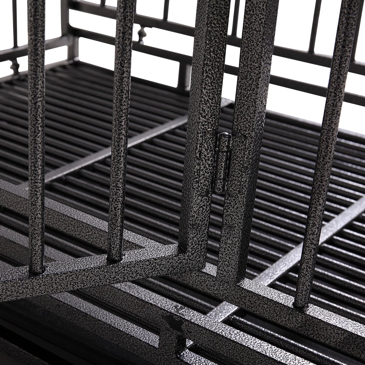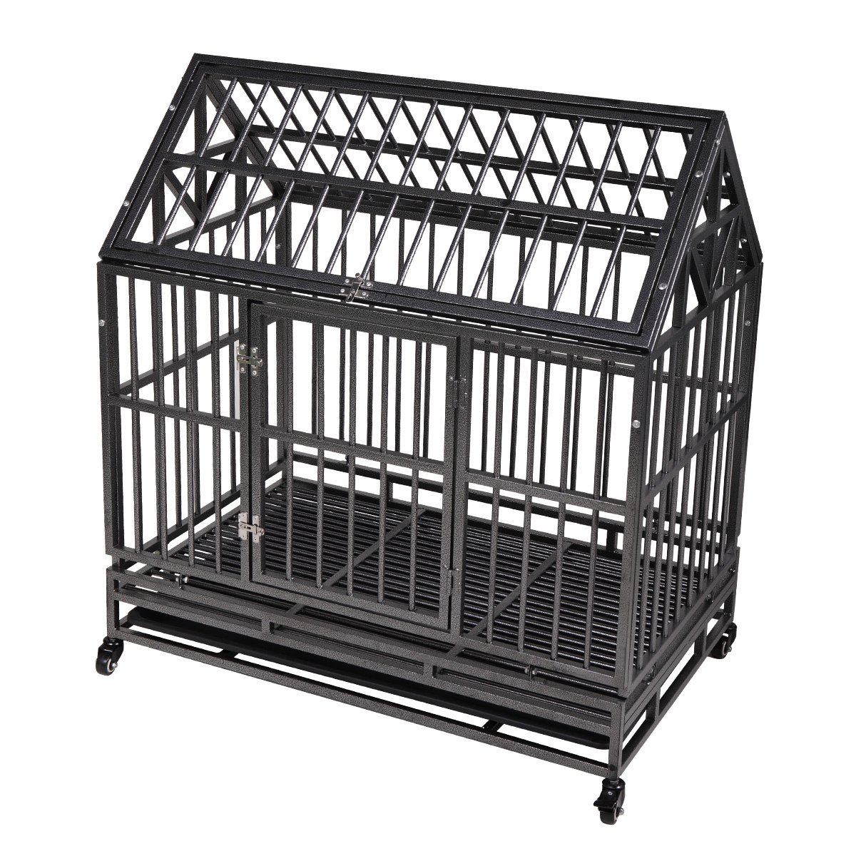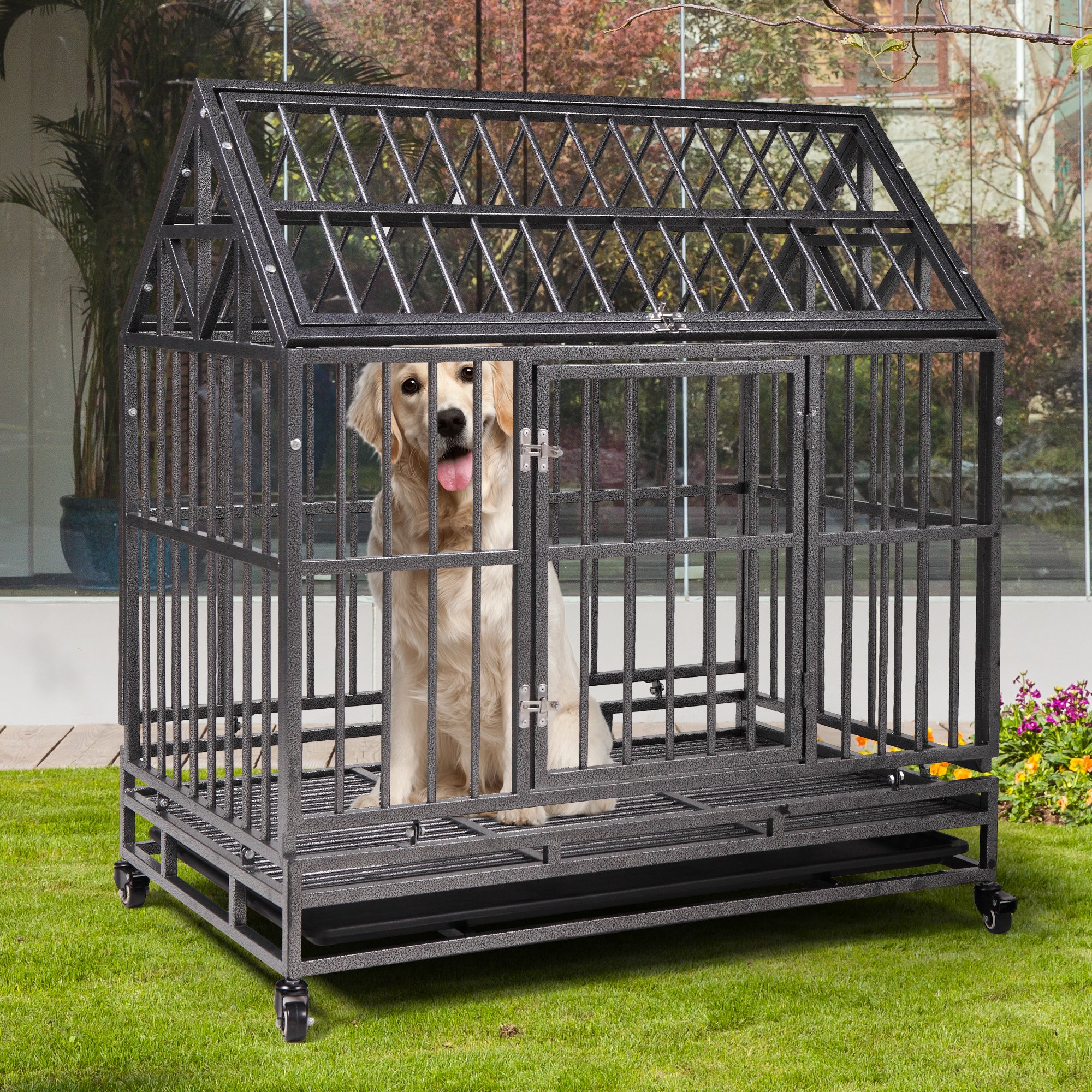 37"L x 41"H Heavy Duty Metal Dog Kennel Cage Crate with 4 Universal Wheels, Openable Pointed Top and Front Door, Black
