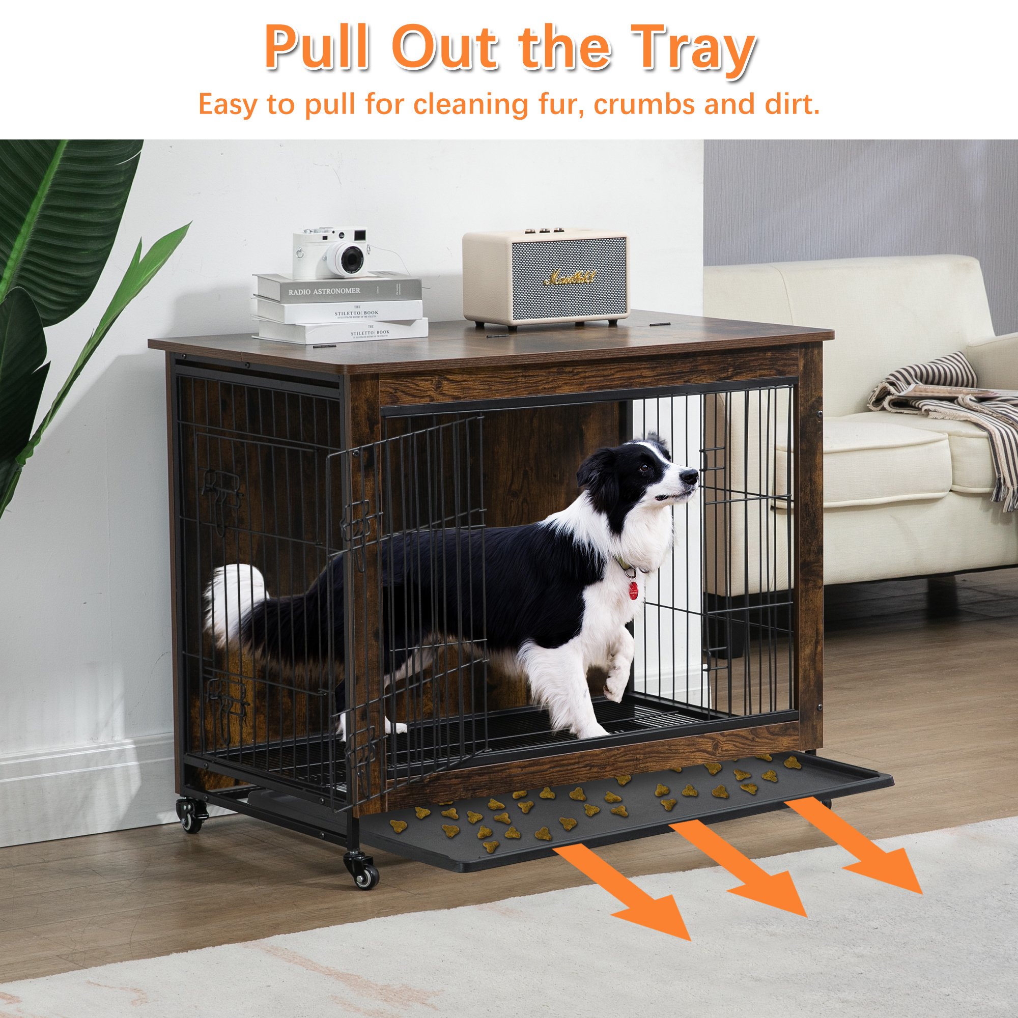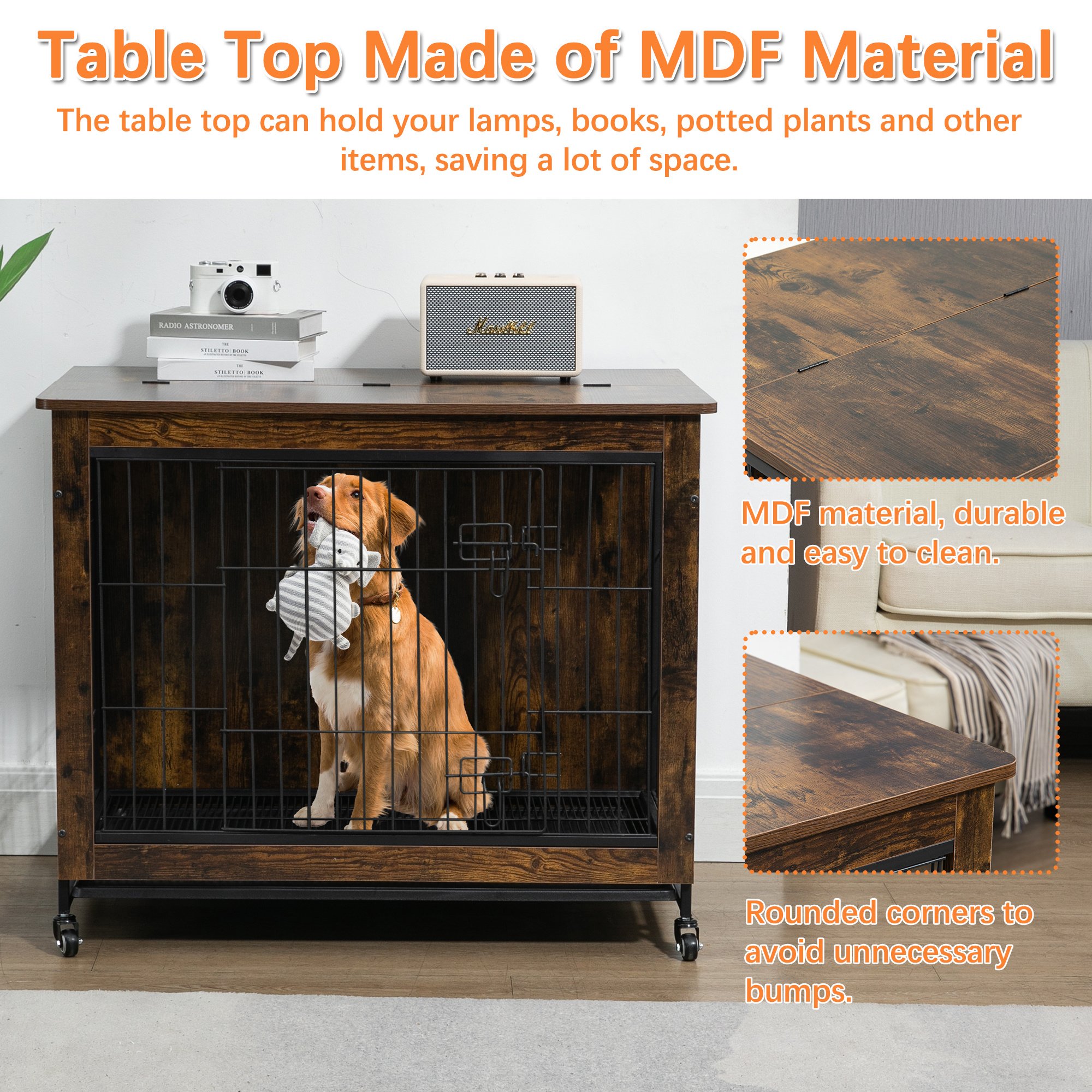 Multi-functional: This pet furniture can be used as pet crate ,also as a side table, end table or night stand. The wide top provides enough place to put some decorations such as small/medium plant, magazines, family picture frames and night lamps and so on.