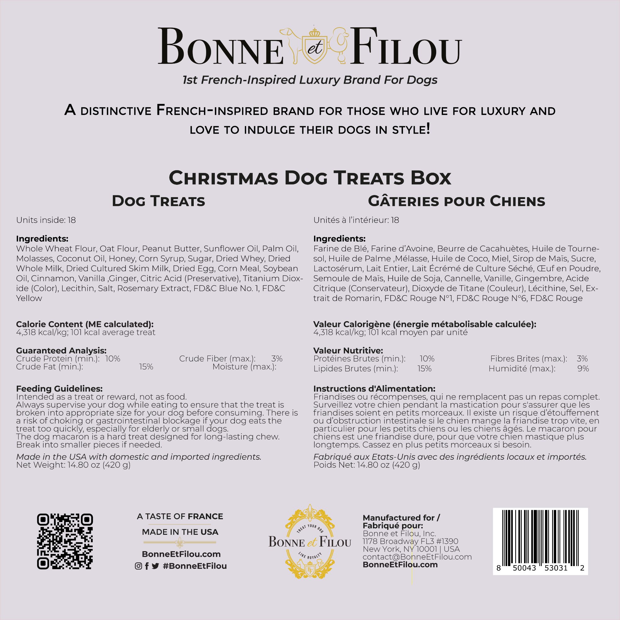 Inspired by the lavish lifestyles of French King Louis XIV’s dogs, Bonne and Filou (who lived in the Palace of Versailles with their own dog chef), we bring you the Bonne et Filou Christmas Box.