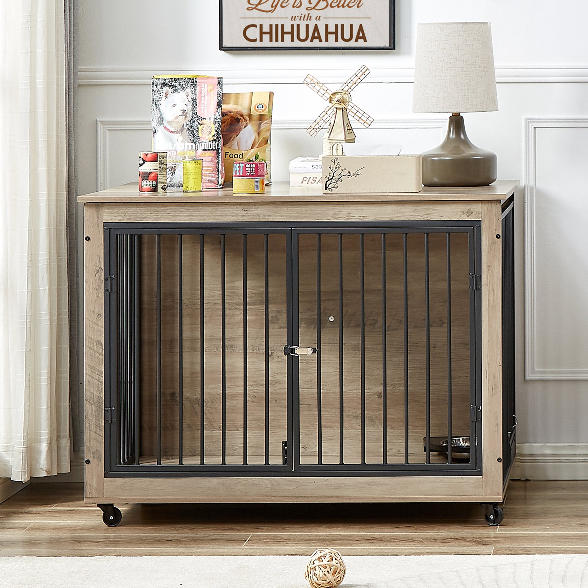 Bottom WheelsYou can effortlessly push this crate to any corner of your home, then lock the wheels to secure the dog crate.Product InformationProduct TypeFurniture dog crateColorGreyMaterialParticleboard, SteelExterior Measurements43.7'' W×30.0'' D×33.7'' HInterior Measurements41.42'' W×27.63'' D×29.92'' HMax. Static Load Capacity of Top150 lbMax. Static Load Capacity of Bottom150 lbBest suited formedium sized dogs up to 70 lbsAssembly RequriedAbout 30 minPackages number1Package Contents1 x Dog Crate, 1 x Assembly Kit, 1 x Instructions