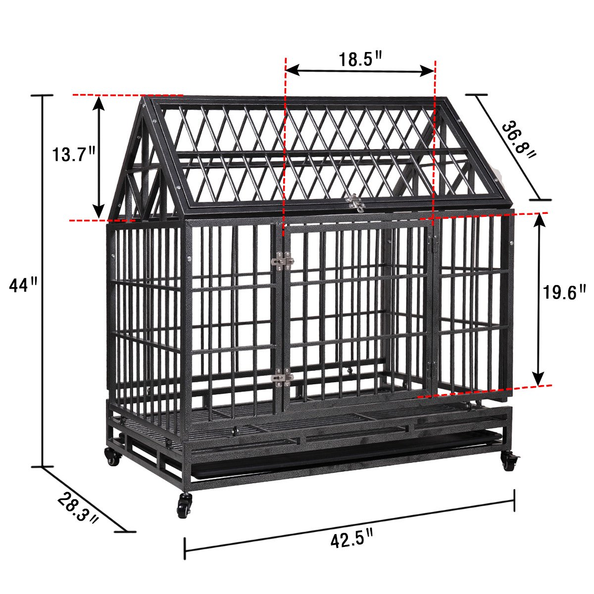 Heavy-Duty Metal Dog Kennel, Pet Cage Crate with Openable Pointed Top and Front Door, 4 Wheels, 42.5"L x 28.3"W x 44"H Heavy-Duty Metal Dog Kennel, Pet Cage Crate with Openable Pointed Top and Front Door, 4 Wheels, 42.5"L x 28.3"W x 44"H Heavy-Duty Metal Dog Kennel, Pet Cage Crate with Openable Pointed Top and Front Door, 4 Wheels, 42.5"L x 28.3"W x 44"H Heavy-Duty Metal Dog Kennel, Pet Cage Crate with Openable Pointed Top and Front Door, 4 Wheels, 42.5"L x 28.3"W x 44"H Heavy-Duty Metal Dog Kennel, Pet Cage Crate with Openable Pointed Top and Front Door, 4 Wheels, 42.5"L x 28.3"W x 44"H Heavy-Duty Metal Dog Kennel, Pet Cage Crate with Openable Pointed Top and Front Door, 4 Wheels, 42.5"L x 28.3"W x 44"H Heavy-Duty Metal Dog Kennel, Pet Cage Crate with Openable Pointed Top and Front Door, 4 Wheels, 42.5"L x 28.3"W x 44"H Heavy-Duty Metal Dog Kennel, Pet Cage Crate with Openable Pointed Top and Front Door, 4 Wheels, 42.5"L x 28.3"W x 44"H Heavy-Duty Metal Dog Kennel, Pet Cage Crate with Openable Pointed Top and Front Door, 4 Wheels, 42.5"L x 28.3"W x 44"H Heavy-Duty Metal Dog Kennel, Pet Cage Crate with Openable Pointed Top and Front Door, 4 Wheels, 42.5"L x 28.3"W x 44"H Heavy-Duty Metal Dog Kennel, Pet Cage Crate with Openable Pointed Top and Front Door, 4 Wheels, 42.5"L x 28.3"W x 44"H Heavy-Duty Metal Dog Kennel, Pet Cage Crate with Openable Pointed Top and Front Door, 4 Wheels, 42.5"L x 28.3"W x 44"H