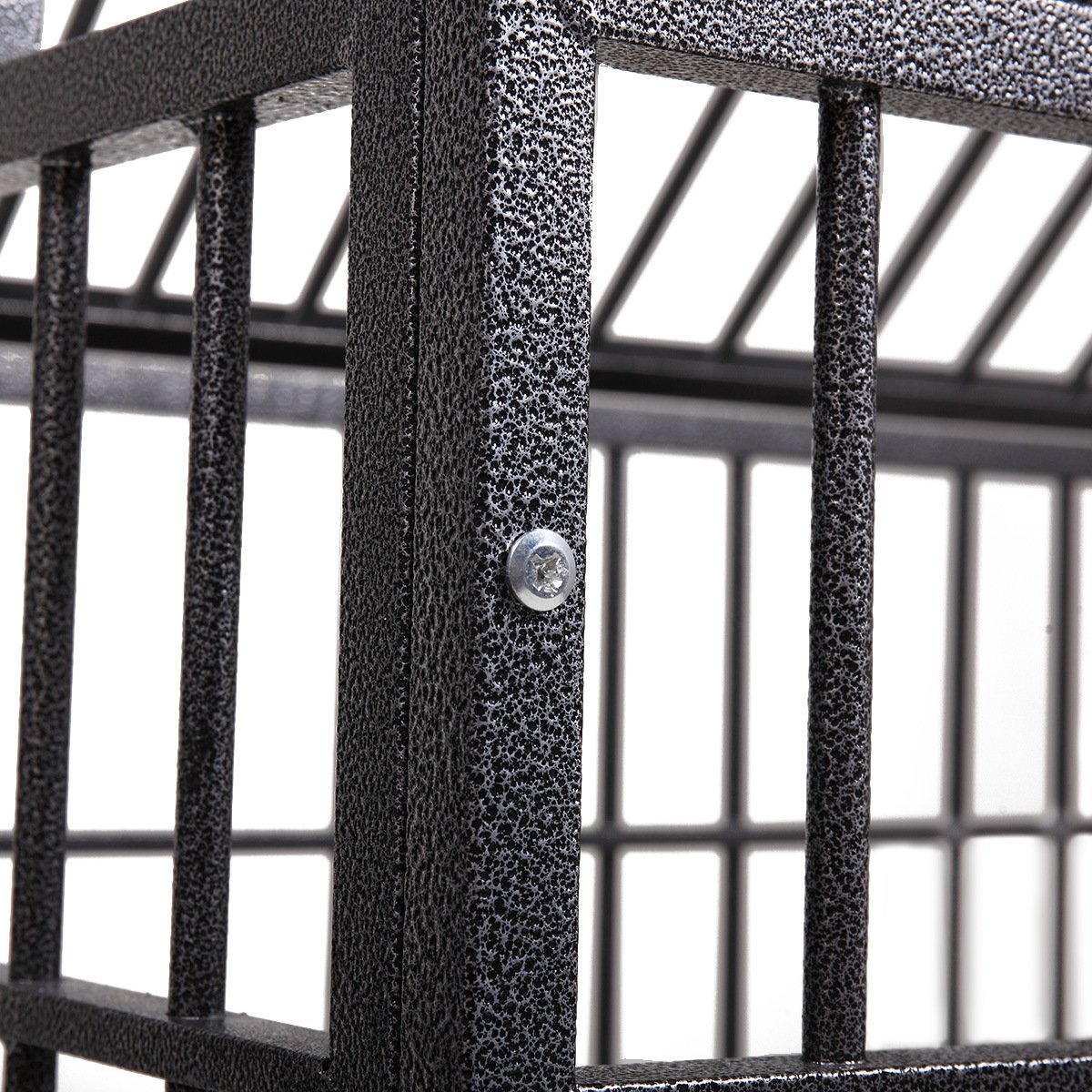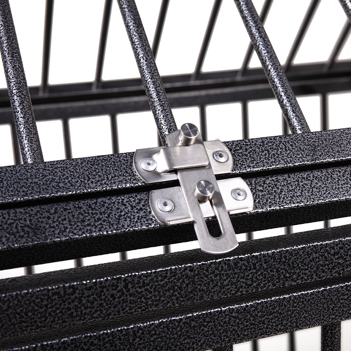 [2LockableEntrances]:This dog crate features both top and front entrances. With the safety in mind, the front door comeswith twoslide-bolt latches, and the top with one,keeping your petsafely insidewhile allowing easy access.
