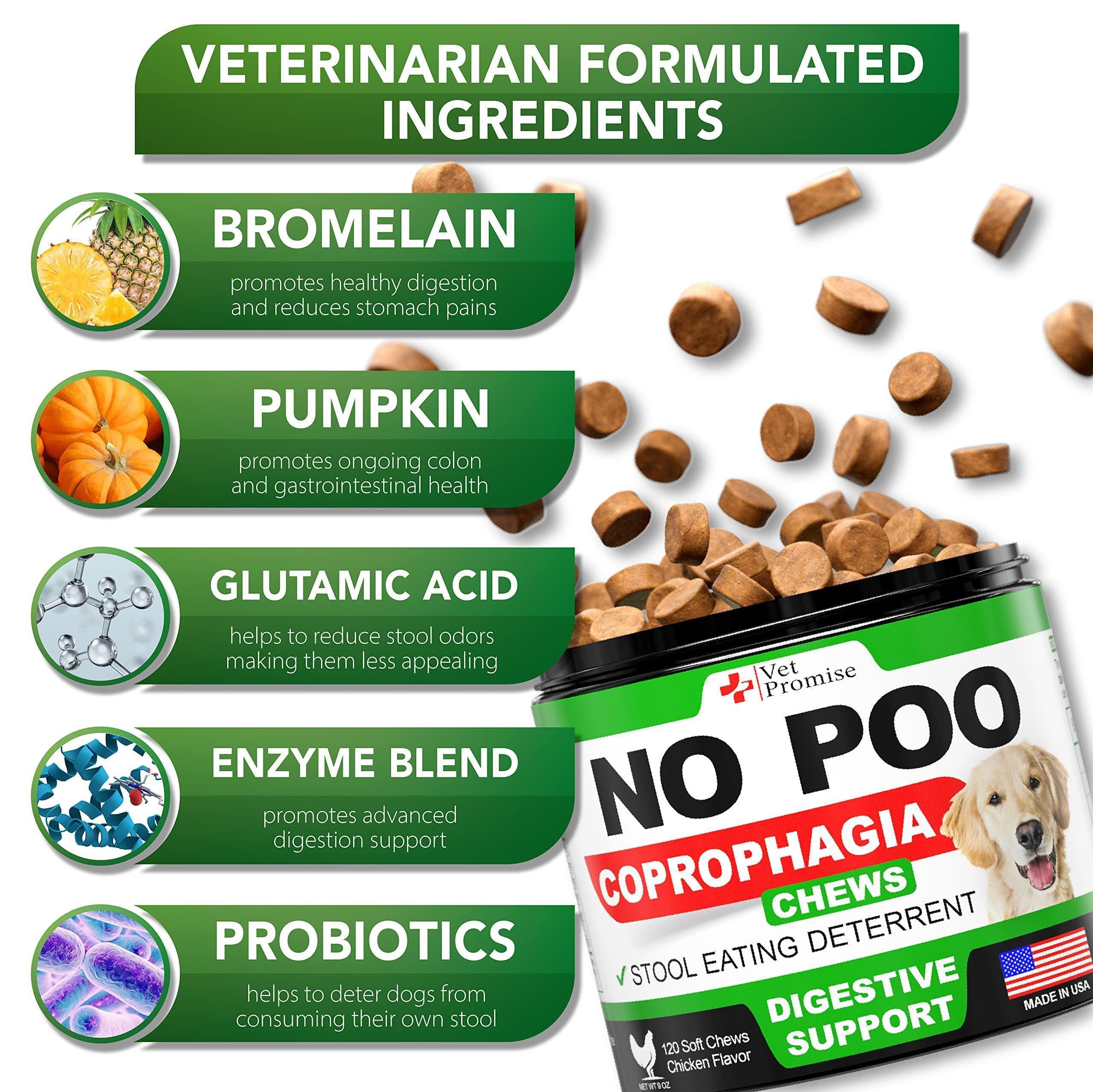 1.Science-Based Solution for Disgusting Dog Behavior These no poop eating for dogs treats function as a deterrent for dogs who consume feces by decreasing the odor of stool & making it less appealing to eat