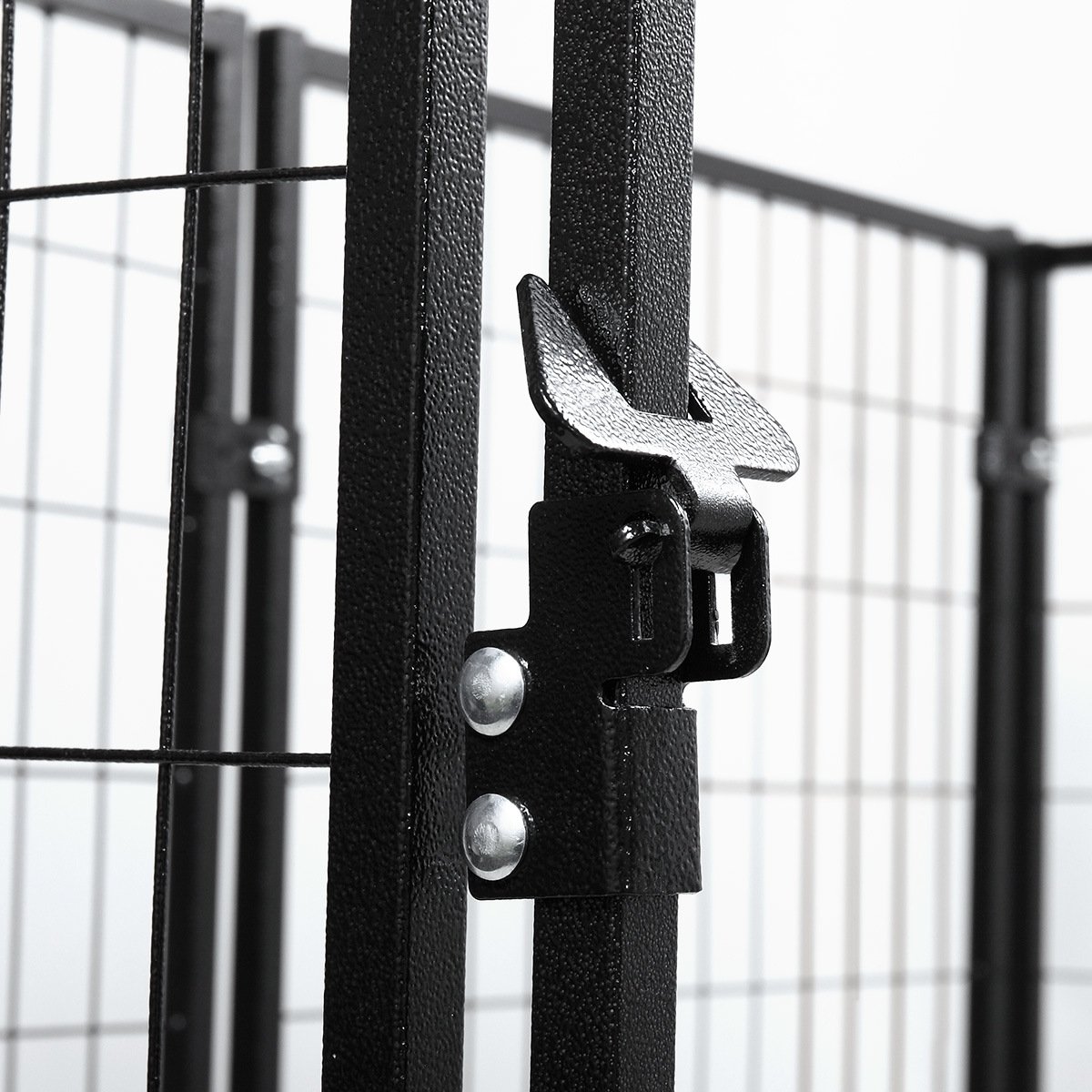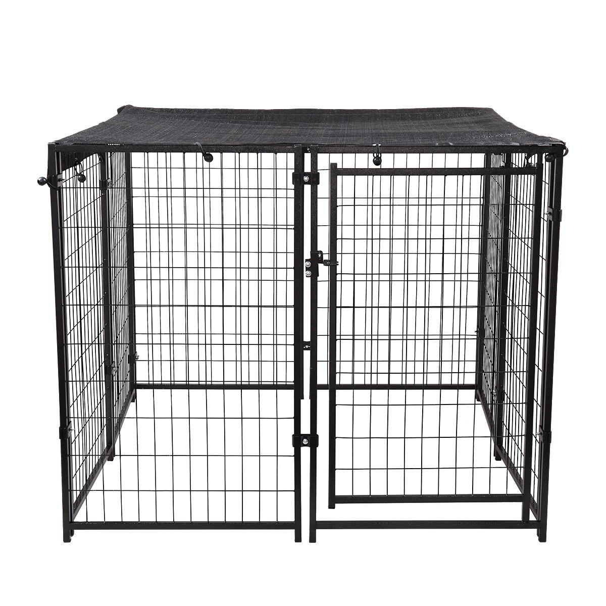 [Heavy-Duty Construction]:Made of heavy-dutyiron pipes with powder coated finish, the dog cage is rust and weather resistant. The high tensile-strength wire mesh will not be destroyed.