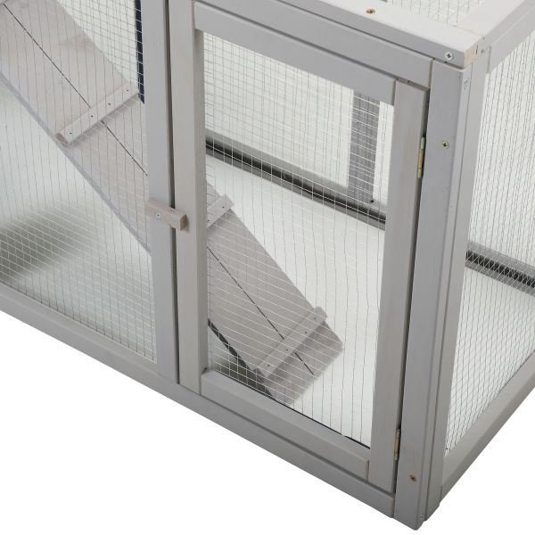 Home > Wooden Rabbit Hutch Chicken Coop with 1 Removable Tray and 3 Lockable Doors for Indoor and Outdoor Use, Gray+White XH